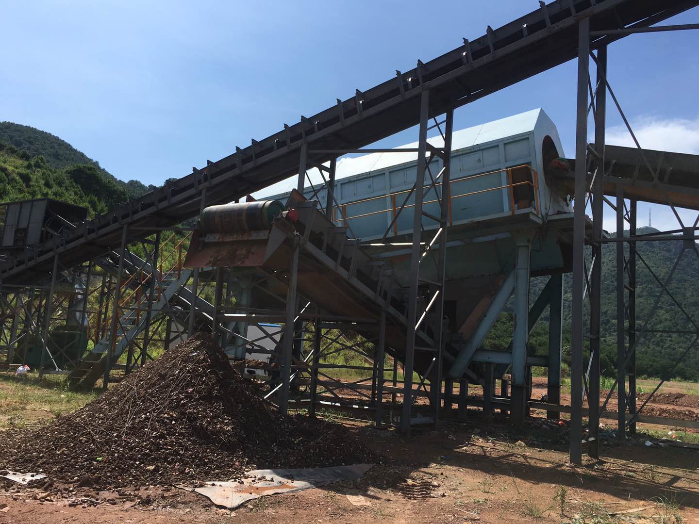 2018年7月,天津時(shí)代天成廣西鐘山縣項(xiàng)目,在緊鑼密鼓的試運(yùn)行中。根據(jù)客戶需求及當(dāng)?shù)丨h(huán)境條件,天津時(shí)代天成環(huán)保針對此項(xiàng)目,自主設(shè)計(jì)研發(fā)了一整套垃圾分選系統(tǒng)。